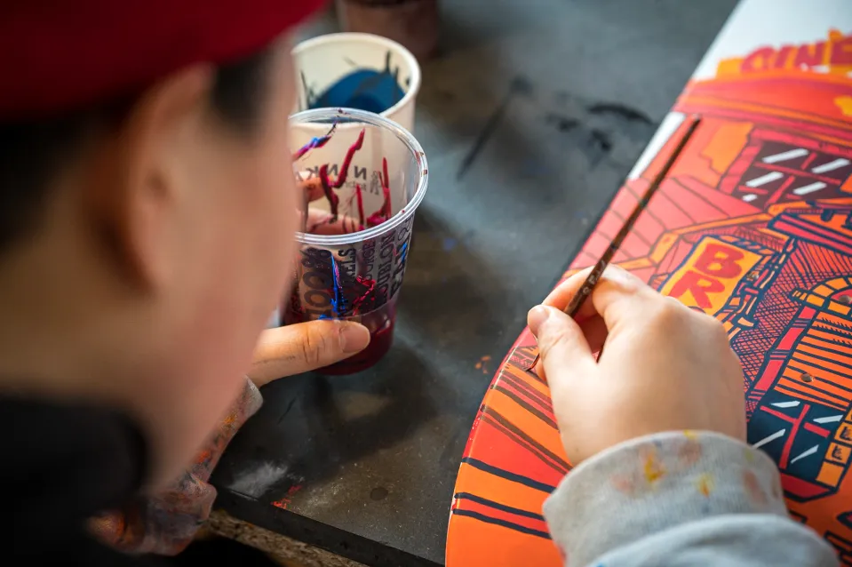 Pratique artistique et sportive, c’est dans la rue que ces deux disciplines se rencontrent et convergent. Aujourd’hui, les collaborations entre marques de skate et artistes voient naître chaque année des œuvres d’art, à skater ou exposer fièrement sur ses murs. À l’image de Kaws x Supreme en 2001, D*Face x Real Skateboards en 2010 ou plus récemment, Tristan Eaton x The Hundreds, pour n’en citer que quelques unes.